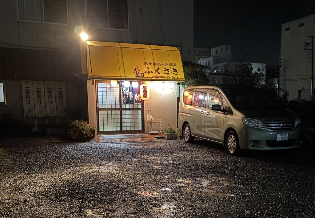 しかし駅周りには店が全くなく、雨の中5、6分歩いたところにポツンと一軒居酒屋「ふくさき」を発見。入るしかない。