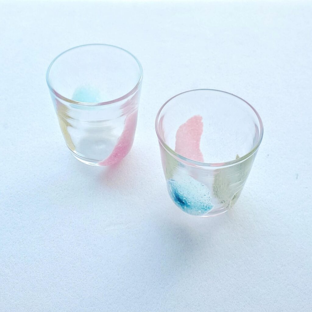 内側に爽やかな色合いの模様が入ったおちょこ。