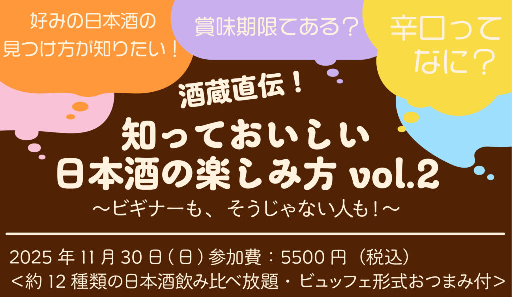 ご好評につき第二弾!「酒蔵直伝!知っておいしい日本酒の楽しみ方vol.2」お申込み受付中