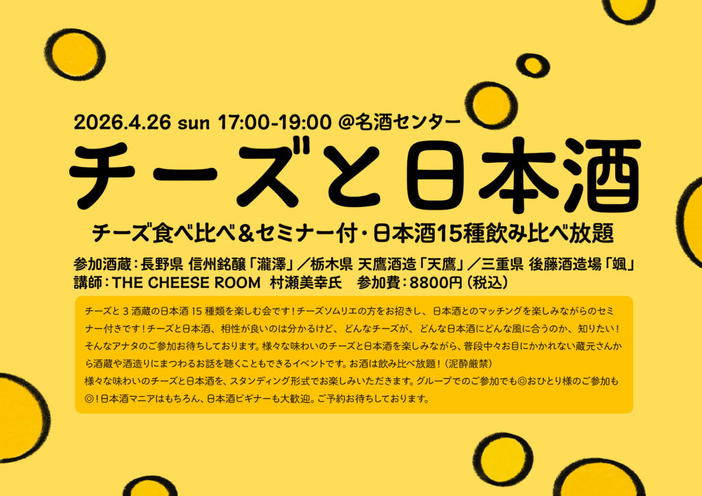 「チーズと日本酒」開催決定!ご予約受付中